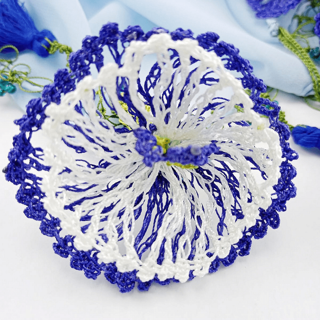| Material | Pamuklu kumaş üzerine suni ipek iplikle tığ oyası |